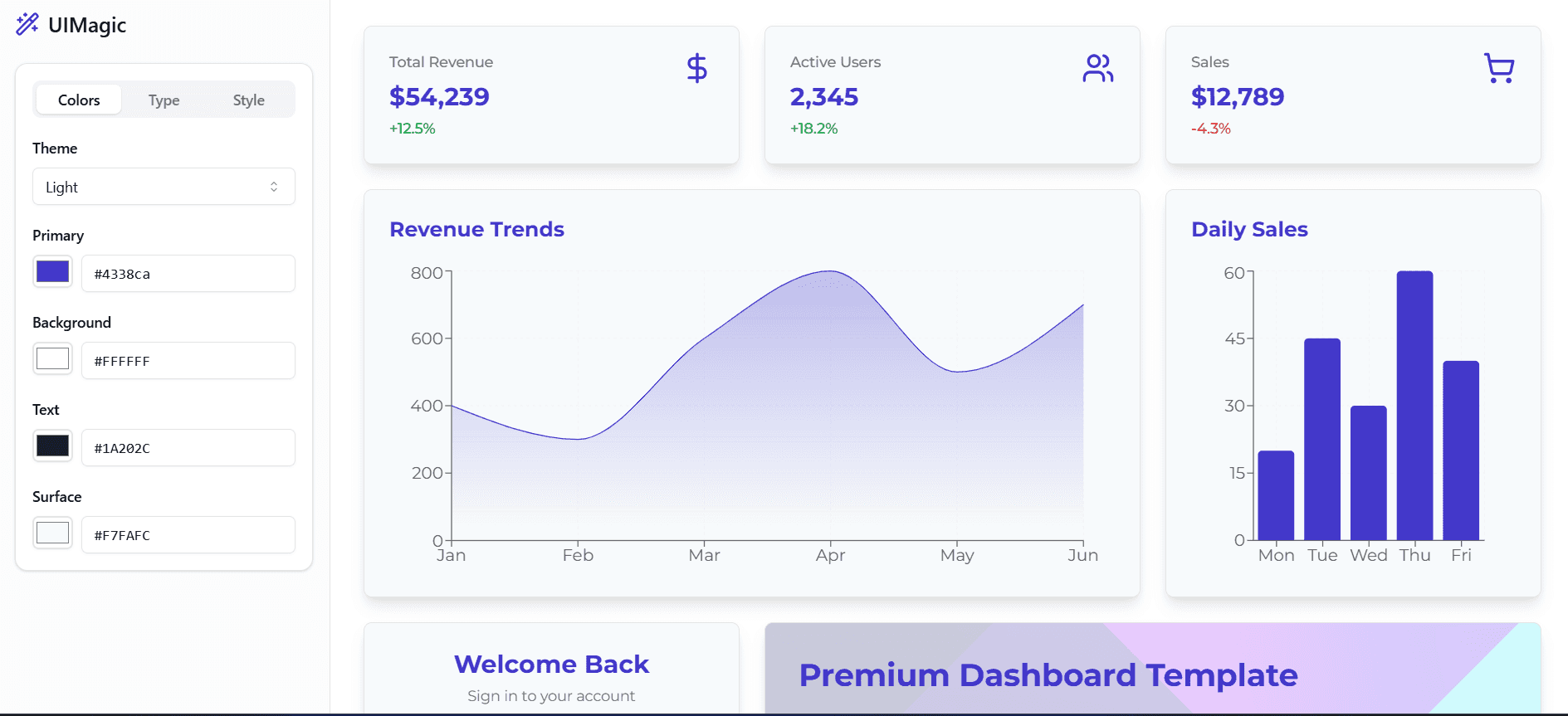 A small UI builder app to quickly visualize your front-end look and feel by tweaking few parameters like brand colors, font, style etc. In future one should be able to generate a full boilerplate design system out of it.